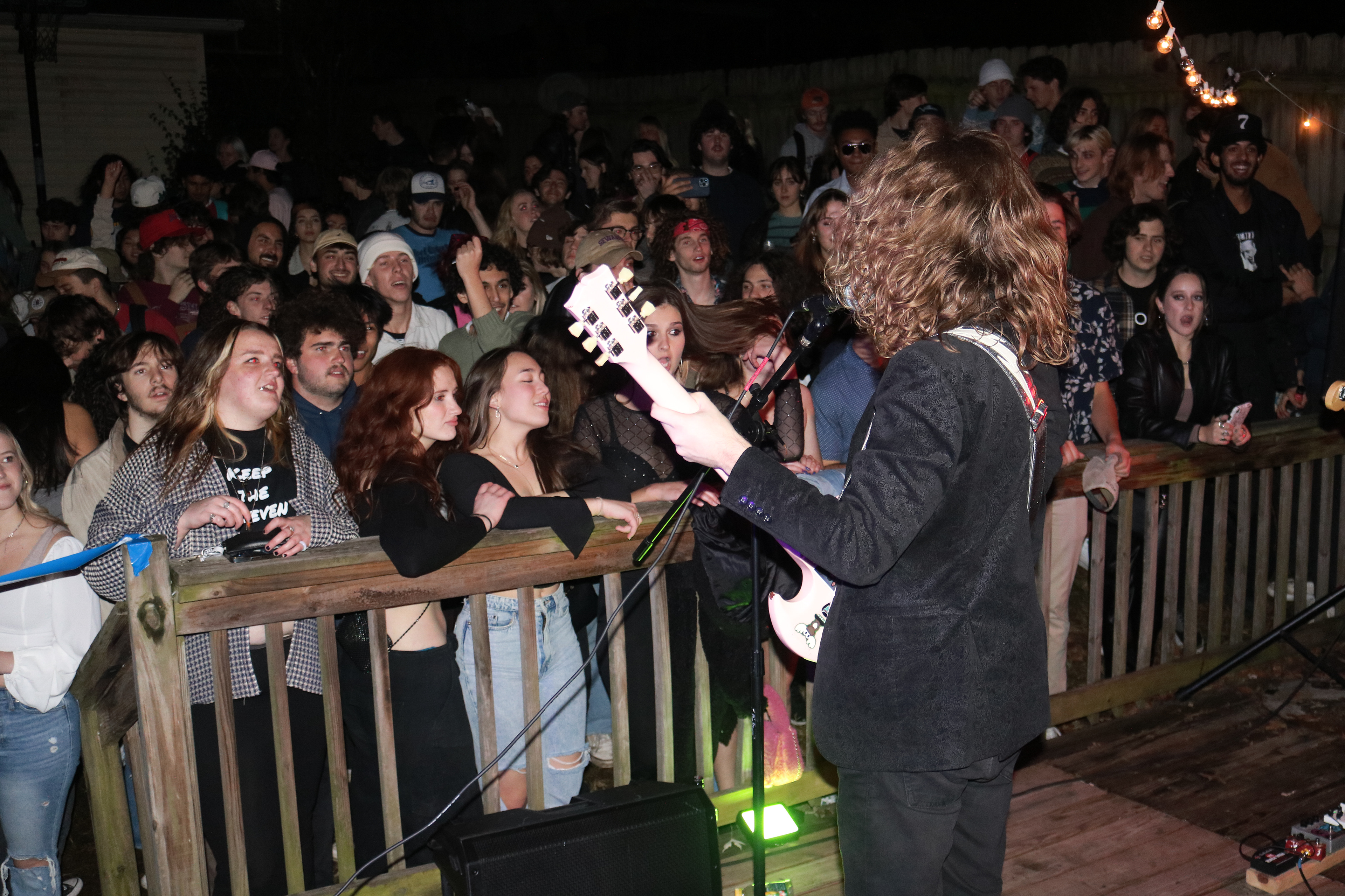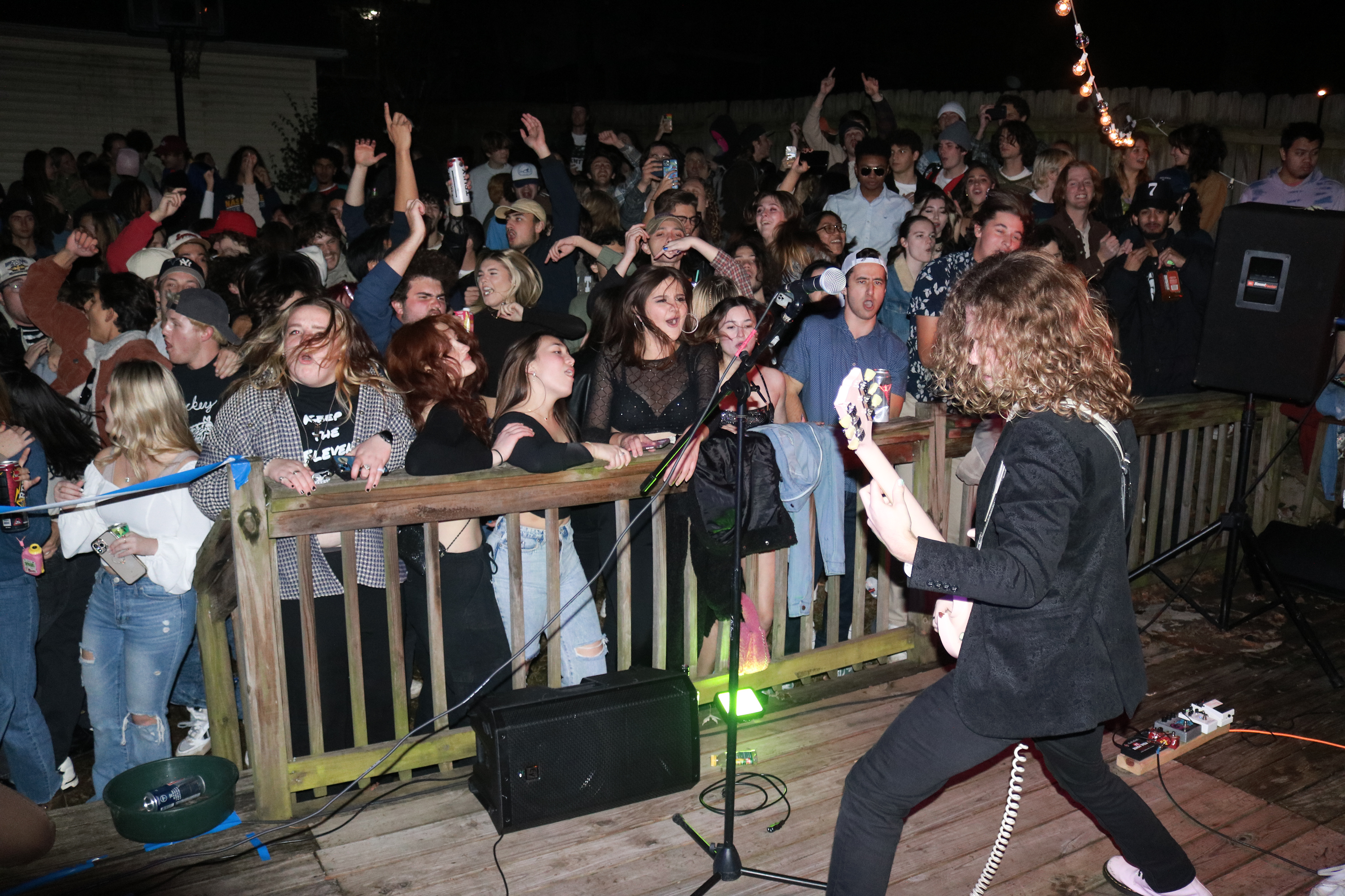 My roommates and have bands perform in our backyard using our deck as a stage. We make money by charging admission. Basically, it's a cheap, fun concert put on by my roommates and I featuring local bands from around Nashville. Around 500 people pay to come into the yard to watch. I took these on my canon rebel t6i. They are not edited.